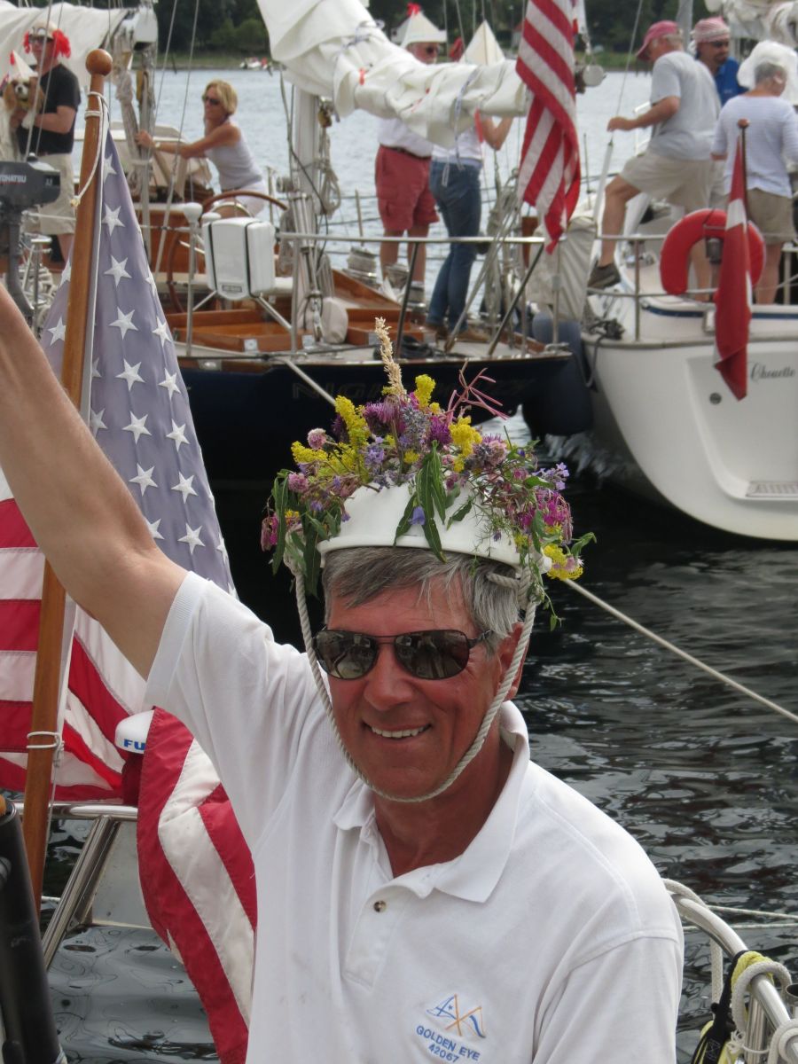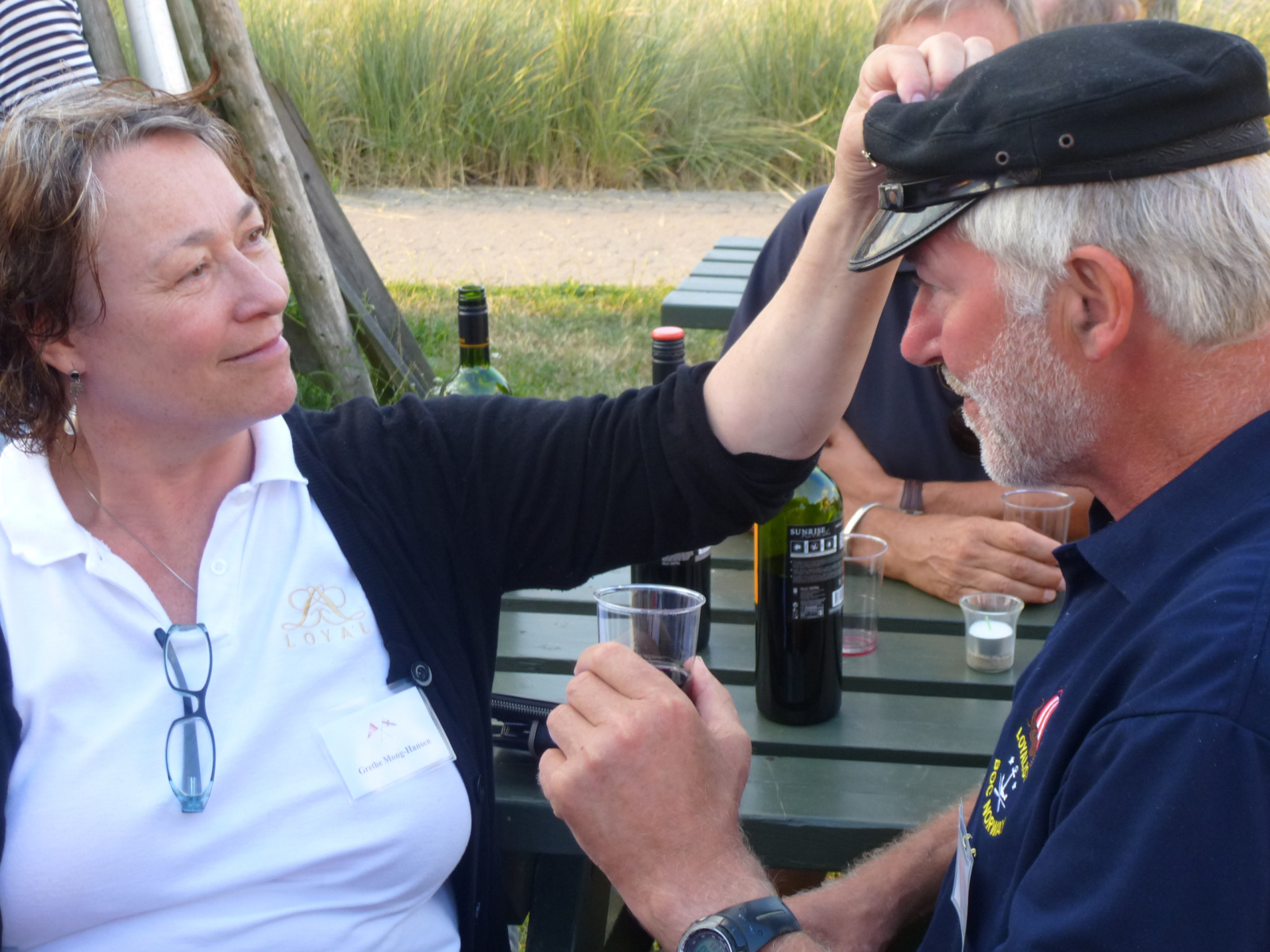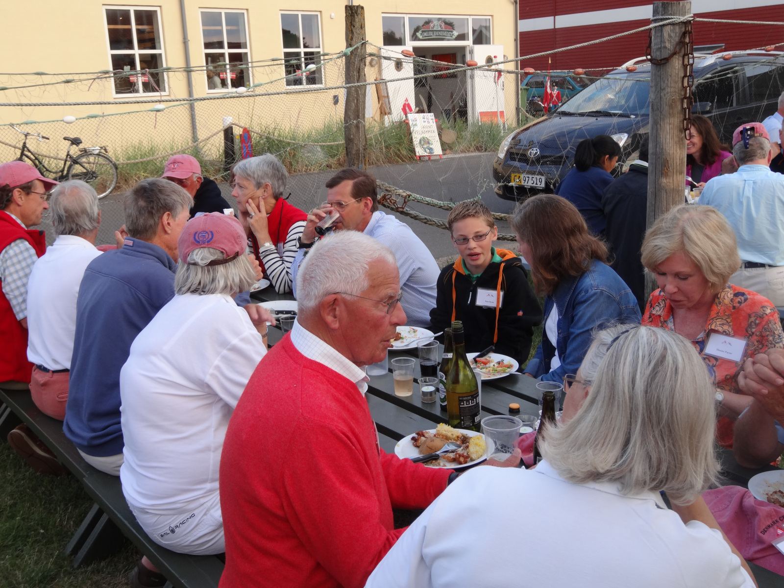 The 2014 NAS Denmark Cruise attracted 80 participants of whom 32 had been on prior NAS cruises and eight had been on three or more! Participants included Post Captain Brown, members of NAS, SYC and each of the Qive Home Clubs, including three past commodores of DKY and GKSS and many guests (and potential new NAS members). There were 17 vessels – nine owner-operated yachts (three US, two Swedish, two Danish, two British); seven chartered; and the ‘mother ship’, Loyal. 2014 was one of the warmest and driest summers in recent Danish history. We had two days of strong winds but otherwise the weather was almost perfect. The Cruise itinerary and chart can be found on the NAS website. We visited about a dozen different ports of call in 13 easy days of 9-39 nm with lay days in Ballen and Ærøskøbing (generally agreed to be the most picturesque port), a total of just over 200nm. The easy-on-the-cook/get-to-know-everyone schedule included elegant formal opening and closing dinners (with ample singing) and four barbeques (at least three of which included singing and poetry recital; one was at the location of a small business that makes ice cream – yum!) and cocktails aboard Loyal and Night Watch. A star raft (successful!) and traditional Hat Party (ever seen a jellyQish hat?) were highlights. We even had a guided tour of a still-lived-in castle. Except in harbors at which most of the Qleet anchored out, Loyal was in each harbor with the Qleet except in Mårup, which we selected only the day before due to adverse wind. Strong winds prevented us from getting to Ebeltoft and a tour of the frigate Jylland, but Cruise Chairman Tunick arranged a fascinating tour of the Energy Academy on Samsø, an island that is energy neutral due to its many windmills and other energy generating or conserving facilities. The Academy has become world-famous and shares its knowledge via education both on Samsø and during visits to other countries; hence “Academy”. Here is what a few participants have to say: “We love Ærøskøbing wet or dry. Great sailing - the Star rafting was very impressive seamanship. We found (good pinch hitting by David!) the energy program on Samso very interesting. All the dining was excellent.” Steve and Gale Sherman “…we should like to thank you all for a very nice and well organized event, which we very much enjoyed. Sadly we had to leave early, as the “VIKINGETRÆF” in Gothenburg was on, but hopefully the rest of your event was as good as the Uirst part.” Mogens and Lena Brinks Unfortunately there was one injury: Dale Bruce thought she had sprained her ankle walking ashore and, after gamely limping around for several days, left the Cruise to seek medical help….and found she had a broken leg! She recently reported that she is well on the mend but, with her plastic boot, is relieved of anchor detail for this season. Participants received an absolutely outstanding cruise book of 130 pages that raises the standard for cruise books. It includes charts, schedules, history, rosters with photos of all participants and vessels, tips and answers to almost any question that could be asked, so much so that “It’s in the cruise book!” became a standing joke. The Cruise reQlects a tremendous and successful three-year effort by Cruise Chairman David Tunick (who seemed to be helping someone on the Cruise from 6 AM to midnight every day), his Committee of 12 and Post Captain Brown and many other friends to NAS and SYC.