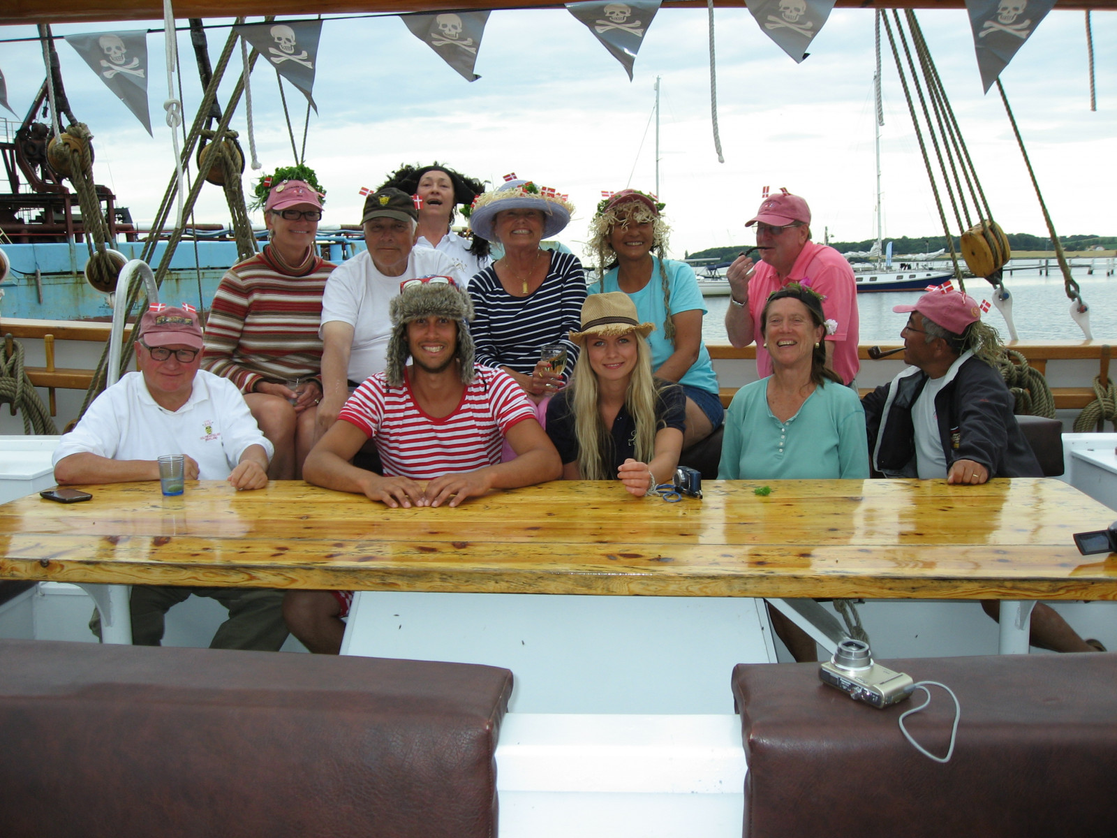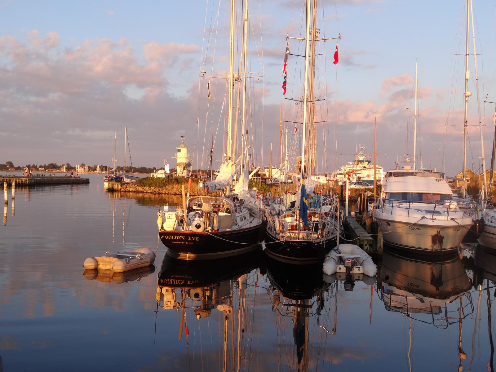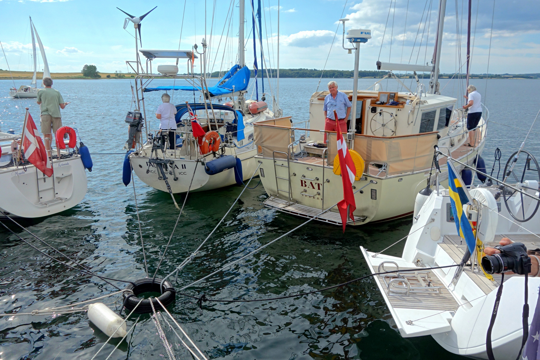 The 2014 NAS Denmark Cruise attracted 80 participants of whom 32 had been on prior NAS cruises and eight had been on three or more! Participants included Post Captain Brown, members of NAS, SYC and each of the Qive Home Clubs, including three past commodores of DKY and GKSS and many guests (and potential new NAS members). There were 17 vessels – nine owner-operated yachts (three US, two Swedish, two Danish, two British); seven chartered; and the ‘mother ship’, Loyal. 2014 was one of the warmest and driest summers in recent Danish history. We had two days of strong winds but otherwise the weather was almost perfect. The Cruise itinerary and chart can be found on the NAS website. We visited about a dozen different ports of call in 13 easy days of 9-39 nm with lay days in Ballen and Ærøskøbing (generally agreed to be the most picturesque port), a total of just over 200nm. The easy-on-the-cook/get-to-know-everyone schedule included elegant formal opening and closing dinners (with ample singing) and four barbeques (at least three of which included singing and poetry recital; one was at the location of a small business that makes ice cream – yum!) and cocktails aboard Loyal and Night Watch. A star raft (successful!) and traditional Hat Party (ever seen a jellyQish hat?) were highlights. We even had a guided tour of a still-lived-in castle. Except in harbors at which most of the Qleet anchored out, Loyal was in each harbor with the Qleet except in Mårup, which we selected only the day before due to adverse wind. Strong winds prevented us from getting to Ebeltoft and a tour of the frigate Jylland, but Cruise Chairman Tunick arranged a fascinating tour of the Energy Academy on Samsø, an island that is energy neutral due to its many windmills and other energy generating or conserving facilities. The Academy has become world-famous and shares its knowledge via education both on Samsø and during visits to other countries; hence “Academy”. Here is what a few participants have to say: “We love Ærøskøbing wet or dry. Great sailing - the Star rafting was very impressive seamanship. We found (good pinch hitting by David!) the energy program on Samso very interesting. All the dining was excellent.” Steve and Gale Sherman “…we should like to thank you all for a very nice and well organized event, which we very much enjoyed. Sadly we had to leave early, as the “VIKINGETRÆF” in Gothenburg was on, but hopefully the rest of your event was as good as the Uirst part.” Mogens and Lena Brinks Unfortunately there was one injury: Dale Bruce thought she had sprained her ankle walking ashore and, after gamely limping around for several days, left the Cruise to seek medical help….and found she had a broken leg! She recently reported that she is well on the mend but, with her plastic boot, is relieved of anchor detail for this season. Participants received an absolutely outstanding cruise book of 130 pages that raises the standard for cruise books. It includes charts, schedules, history, rosters with photos of all participants and vessels, tips and answers to almost any question that could be asked, so much so that “It’s in the cruise book!” became a standing joke. The Cruise reQlects a tremendous and successful three-year effort by Cruise Chairman David Tunick (who seemed to be helping someone on the Cruise from 6 AM to midnight every day), his Committee of 12 and Post Captain Brown and many other friends to NAS and SYC.
